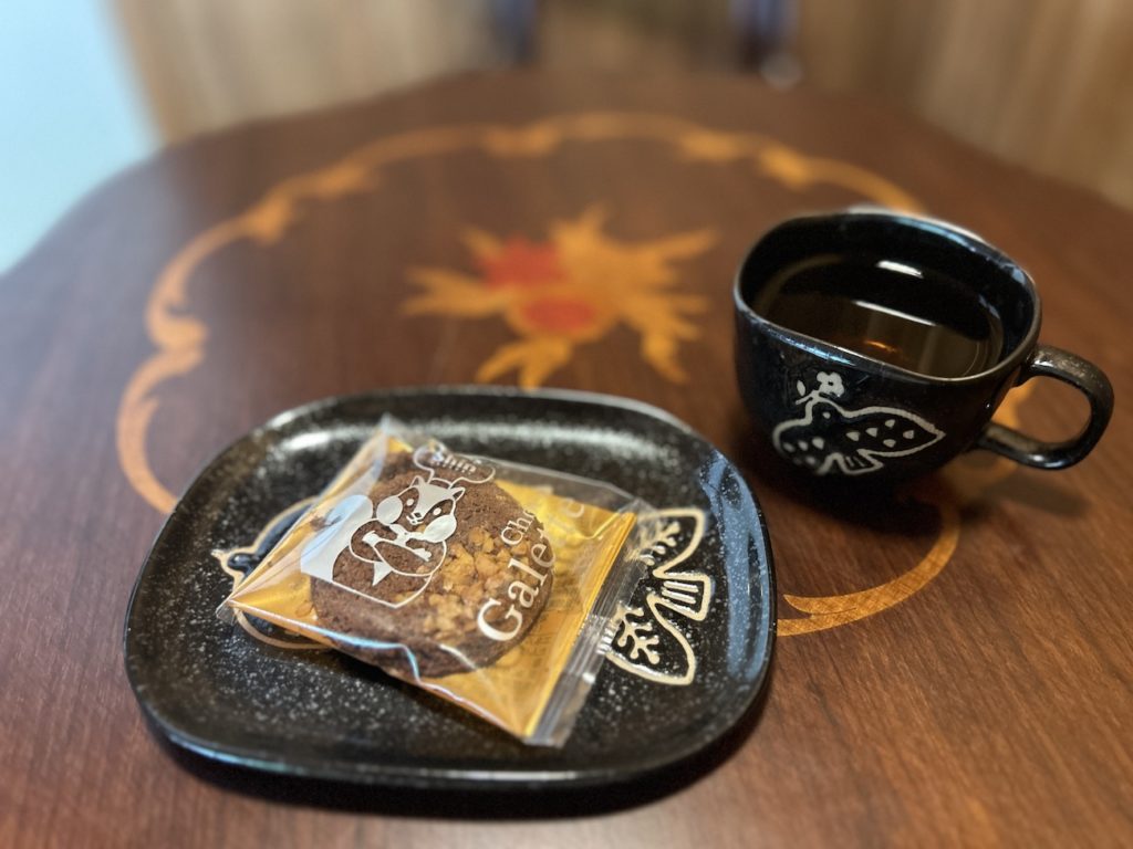 先ほどの「おこもり席」に座っていたら、「よかったら、どうぞ」と、運ばれてきたのはお茶とクッキー。(お忙しいのにスミマセン、汗)
